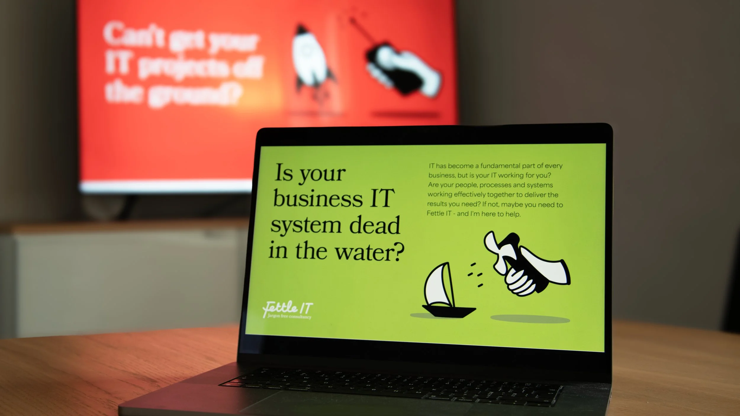 After a series of informal meetings, workshops and cups of tea with Helen, we chose an illustration-focused identity using metaphors for business consultancy as the basis of the branding. The choice of simple language, bright colours, and friendly design elements supports the idea of "jargon-free" and accessible IT support. The new visual identity was implemented across various marketing materials, a fresh website and animated social media collateral.