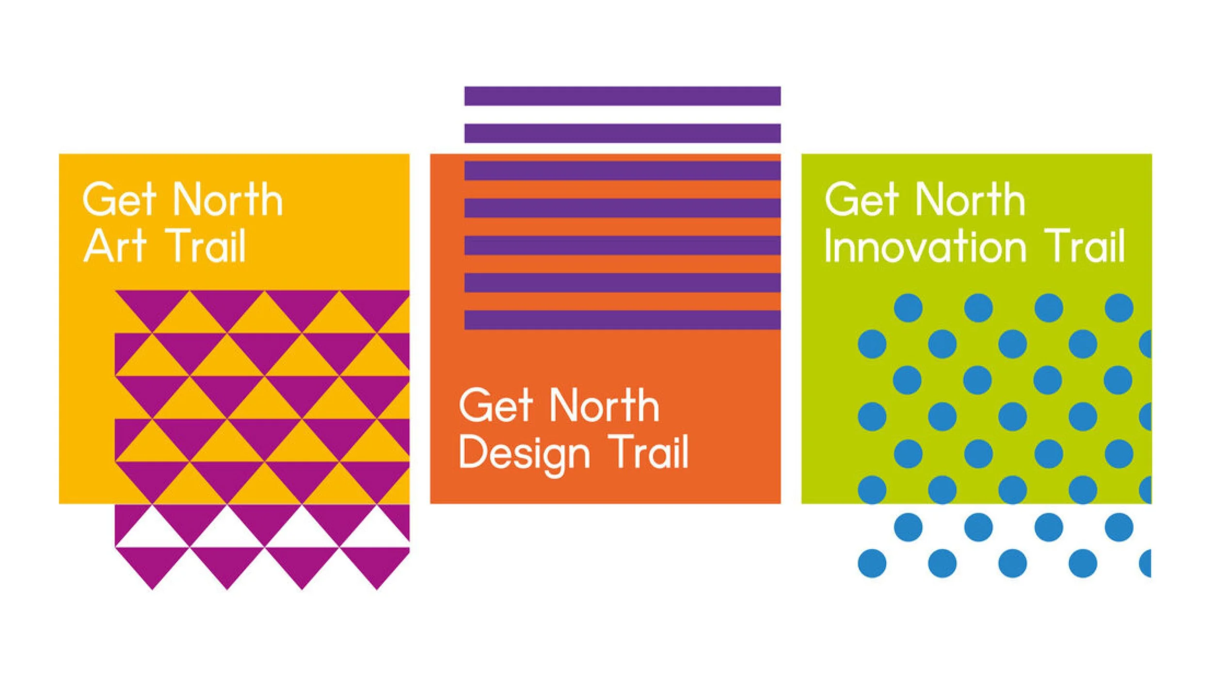 Working with the team at NewcastleGateshead Initiative (NGI), we carried out several brand workshops that helped us to define a core narrative, a tone-of-voice and key messaging for the exhibition. We went on to develop branding that incorporated a strong colour and pattern coded navigation system to help guide audiences around the city as well as the #GetNorth awareness campaign, exhibition website and a comprehensive range of digital and printed advertising and marketing collateral.