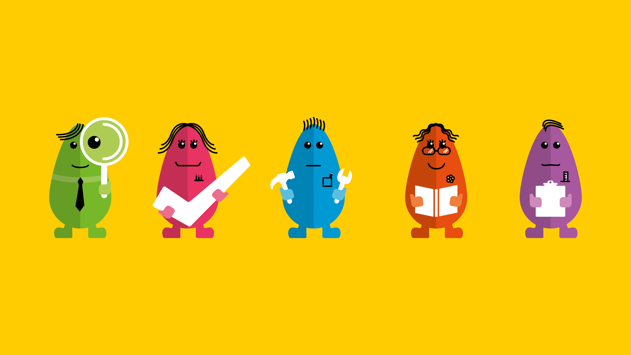 We developed a series of illustrated characters as part of a daring rebrand to create a personable and friendly tone. This approach helped to build a positive solutions focused visual identity that stands out against Inspectas’ competitors, which tend to focus on a scare mongering message about asbestos.